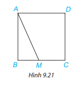 Hãy giải thích: Nếu M là một điểm tùy ý nằm trên cạnh BC hoặc cạnh CD của hình vuông ABCD thì độ dài đoạn thẳng AM luôn lớn hơn hoặc bằng độ dài cạnh của hình vuông đó (H.9.21).
