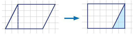 Vẽ hình bình hành trên giấy kẻ ô vuông rồi cắt, ghép thành hình chữ nhật
