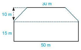 Mặt sàn của một ngôi nhà được thiết kế như hình dưới (đơn vị m). Hãy tính diện tích mặt sàn.
