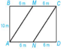 Trên một mảnh đất hình chữ nhật có chiều dài 12 m, chiều rộng 10 m, người ta phân chia khu vực để trồng hoa, trồng cỏ như hình bên. Hoa sẽ được trồng ở trong khu vực hình bình hành AMCN, cỏ sẽ trồng ở phần đất còn lại. Tiền công để trả cho mỗi mét vuông trồng hoa là 50 000 đồng, trồng cỏ là 40 000 đồng. Tính số tiền công cần chi trả để trồng hoa và cỏ.