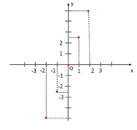 Tập hợp các điểm của đồ thị hàm số $y = f(x)$ là ${(– 2; – 5); (– 1; – 2,5); (0; 0); (1; 2,5); (2; 5)}$.