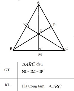 Chứng minh rằng trong tam giác đều, điểm cách đều 3 cạnh của tam giác là trọng tâm của tam giác đó.