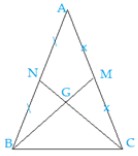 \(\Rightarrow GB = \dfrac{2}{3}BM\); \(GC = \dfrac{2}{3}CN\) (tính chất đường trung tuyến trong tam giác)