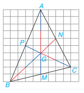 $\dfrac{{GA}}{{MA}} = \dfrac{6}{9} = \dfrac{2}{3};\\\dfrac{{GB}}{{NB}} = \dfrac{2}{3};\\\dfrac{{GC}}{{PC}} = \dfrac{2}{3}$.