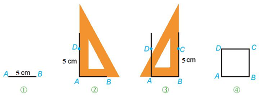 – Bước 4. Nối C với D ta được hình vuông ABCD