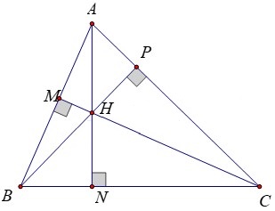 $AH ⊥ BC$ tại $N$, $BH ⊥ AC$ tại $P$, $CH ⊥ AB$ tại $M$.