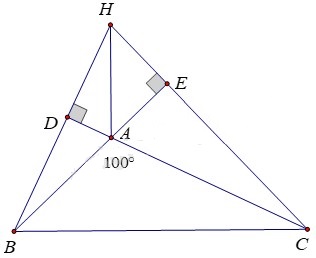 Cho tam giác $ABC$ có \(\widehat A = {100^0}\) và trực tâm $H$. Tìm góc $BHC$.