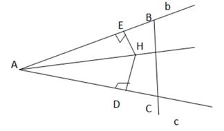 – Kẻ \(HD \bot \) đường thẳng $c$ tại điểm $D, HE \bot $ đường thẳng $b$ tại điểm $E$