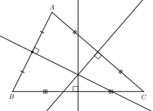 Ta thấy ba đường trung trực của tam giác cùng đi qua một điểm.