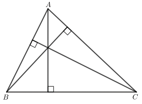 Ta thấy ba đường cao của tam giác cùng đi qua một điểm.