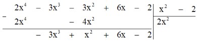 $= 2x^4 – 5x^3 + x^2 – ( 8x^3 – 20x^2 + 4x) – (6x^2 – 15x + 3)$
