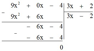 Vậy $(9x^2 – 4) : (3x + 2) = 3x – 2$.