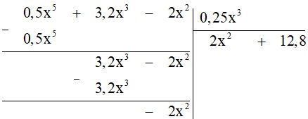 $(0,5x^5 + 3,2x^3 – 2x^2) : 0,25x^2$