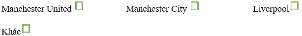 | Đội bóng | Manchester United | Manchester City | Liverpool | Đội bóng khác |