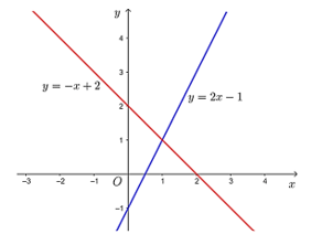Cho hai hàm số $y=2x−1$ và $y=−x+2$.