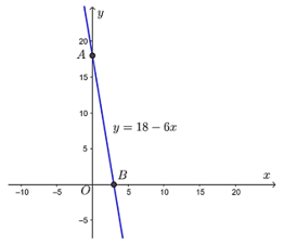 Đồ thị hàm số $y = 18 – 6x$ là đường thẳng $AB$.
