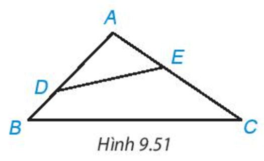 Cho tam giác $ABC$ có \(\widehat {BAC}\) là góc tù. Lấy điểm $D$ nằm giữa $A$ và $B$, lấy điểm $E$ nằm giữa $A$ và $C$ (H.9.51). Chứng minh $DE < BC$.