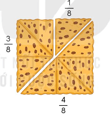 Do đó, Nam đã ăn 2 phần bánh là \(\frac{1}{8}\) và \(\frac{3}{8}\)