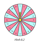 Một tấm bìa cứng hình tròn được chia thành $20$ hình quạt như nhau, đánh số từ $1; 2;…; 20$ và được gắn vào trục quay có mũi tên cố định ở tâm (H.8.2). Quay tấm bìa và quan sát xem mũi tên chỉ vào hình quạt nào khi tấm bìa dừng lại.