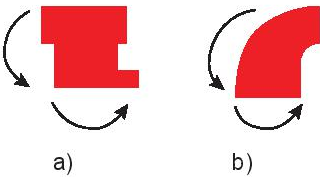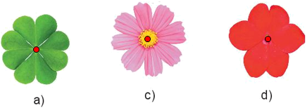 Trong ba hình trên: hình tròn, hình chong chóng bốn cánh (hình a) và hình c)) có chung tính chất: Có điểm O sao cho khi quay chúng nửa vòng quanh O thì hình thu được chồng khít với chính nó ở vị trí ban đầu (trước khi quay).