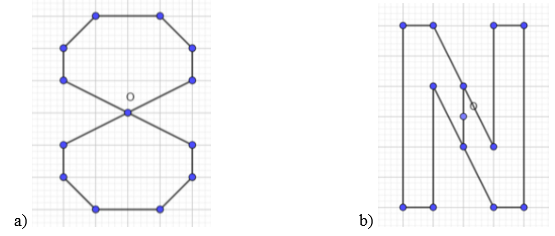 Trong mỗi hình dưới đây, điểm O có phải là tâm đối xứng không?
