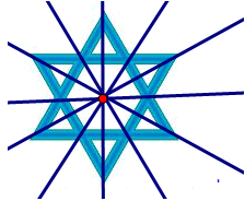 – Tâm đối xứng của ngôi sao sáu cánh là giao điểm 2 đường thẳng nối 2 điểm đối diện.