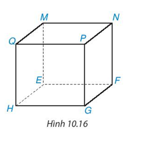 Kể tên các đỉnh, cạnh và đường chéo của hình lập phương MNPQ. EFGH ở Hình 10.16.