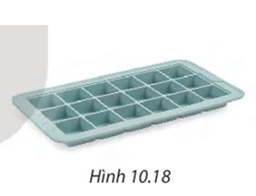 Một chiếc khay đá để trong tủ lạnh có 18 ngăn nhỏ hình lập phương với cạnh 2 cm (H.10.18). Hỏi tổng thể tích của toàn bộ các viên đá lạnh dựng đầy trong khay là bao nhiêu?