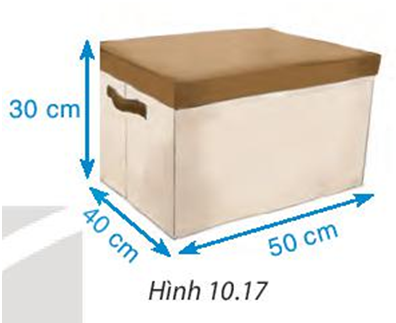Một chiếc hộp đựng đồ đa năng có dạng hình hộp chữ nhật với khung bằng thép, bên ngoài phủ vải và kích thước như Hình 10.17.