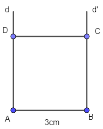 – Trên đường thẳng d lấy điểm D, trên đường thẳng d’ lấy điểm C sao cho AD = BC = 3 cm.