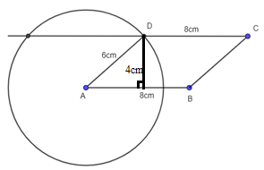 – Vẽ đường tròn tâm A bán kính 6 cm. Đường tròn này cắt đường thẳng d tại điểm D.
