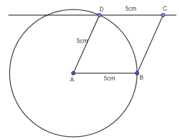 – Vẽ đường tròn tâm A bán kính 5 cm. Trên đường tròn này lấy điểm D.