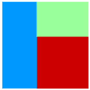 – Đặt hình màu xanh lá lên trên hình màu đỏ ta được một hình chữ nhật mới có chiều dài bằng chiều dài của hình màu xanh dương.