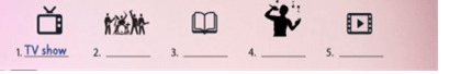 | 1. TV show | 2. band | 3. book | 4. singer | 5. movie |