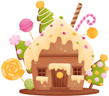 (Đây là hình ảnh của ngôi nhà kỳ lạ của mình. Nó có hình dạng của một chiếc bánh cupcake vì tôi rất thích đồ ngọt. Nó có nhiều màu sắc với nâu, xanh lá cây, cam, hồng, và trắng. Xung quanh nhà có rất nhiều cây kẹo. Tôi thực sự muốn sống trong ngôi nhà này.)