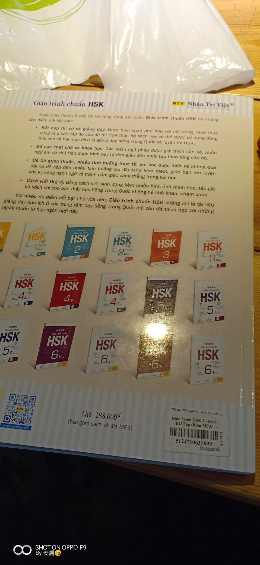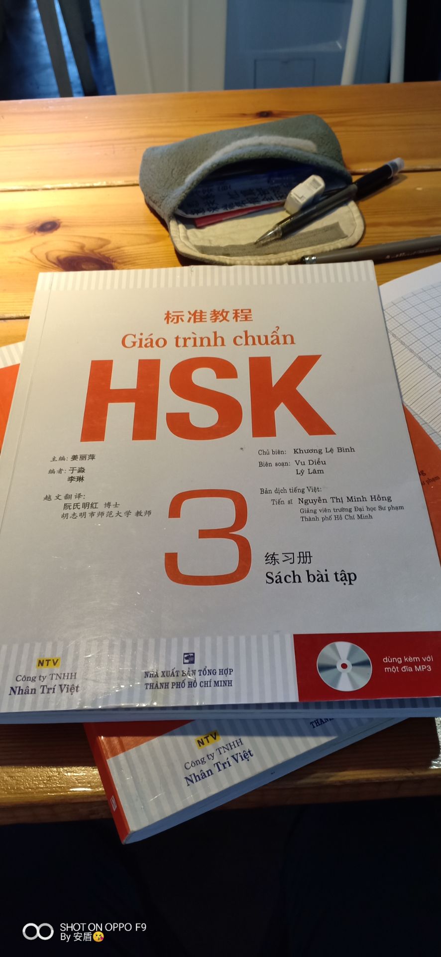 Giáo Trình HSK 3 – Sách Bài Tập (Kèm MP3) Được chia thành 6 cấp độ với tổng cộng 18 cuốn, Giáo trình chuẩn HSK có những đặc điểm nổi bật sau: Kết hợp thi cử và giảng dạy: Được biên soạn phù hợp với nội dung, hình thức cũng như các cấp độ của đề thi HSK thật, bộ sách này có thể được sử dụng đồng thời cho cả hai mục đích là giảng dạy tiếng Trung Quốc và luyện thi HSK. Bố cục chặt chẽ và khoa học: Các điểm ngữ pháp được giải thích cặn kẽ, phần ngữ âm và chữ Hán được trình bày từ đơn giản đến phức tạp theo từng cấp độ. Đề tài quen thuộc, nhiều tình huống thực tế: Bài học được thiết kế không quá dài và đề cập đến nhiều tình huống (có đĩa MP3 kèm theo), giúp bạn rèn luyện các kỹ năng ngôn ngữ và tránh cảm giác căng thẳng trong lúc học. Cách viết thú vị: Bằng cách viết sinh động kèm nhiều hình ảnh minh họa, tác giả bộ sách chỉ cho bạn thấy học tiếng Trung Quốc không hề khô khan, nhàm chán. Với nhiều ưu điểm nổi bật như vừa nêu, Giáo trình chuẩn HSK không chỉ là tài liệu giảng dạy hữu ích ở các trung tâm dạy tiếng Trung Quốc mà còn rất thích hợp với những người muốn tự học ngôn ngữ này.