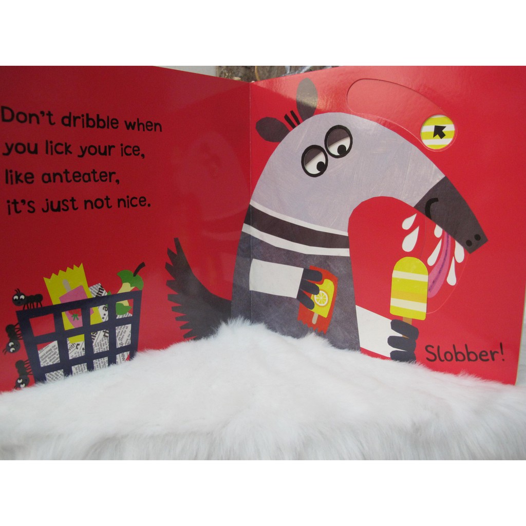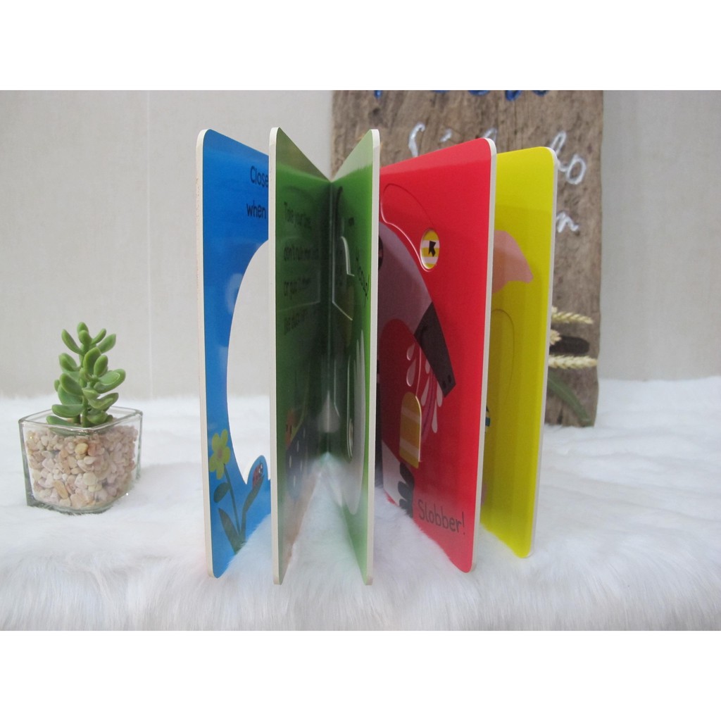 Mượn hình ảnh các bạn bò, vịt, heo… cùng dùng thức ăn, cuốn sách đáng yêu này sẽ giúp bé học được những khái niệm đầu tiên về cử xử lịch sự nhã nhặn khi ăn uống – Không ăn nhuồm nhoàm, – không vừa ăn vừa nói – Khi bị nấc cụt… Sách dày dặn, với trang giấy lên đến 2mm, nên các bé nhỏ từ 2 tuổi có thể sử dụng lâu dài Sách được thiết kế với dạng PULL THE TAP, kéo đẩy các tấm thẻ, giúp cha mẹ tương tác với bé nhiều hơn khi đọc sách nhé Sách giấy cứng , nhập trực tiếp từ UK Đọ tuổi 2-6 ISBN-10: 9781509842759 ISBN-13: 978-1509842759 Kích thước: 20 x 1.4 x 20 cm