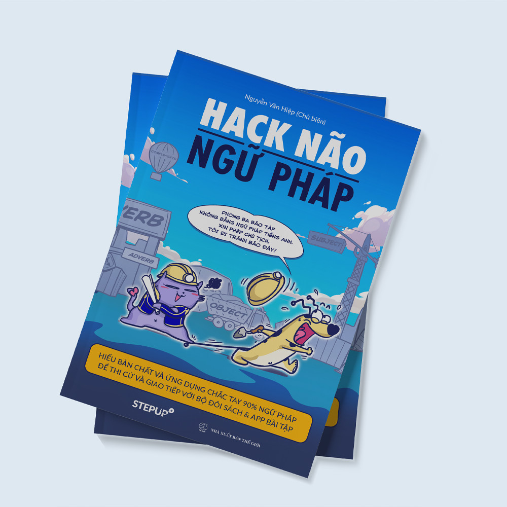 Hack Não Ngữ Pháp là bộ sản phẩm học ngữ pháp tiếng Anh từ cơ bản tới nâng cao. Bộ sản phẩm gồm một cuốn sách kiến thức nền tảng và một App học tập thông minh. Ngoài ra các dịch vụ hỗ trợ khác đi kèm như lớp học livestream, group cộng đồng… Xem demo sách BẠN NHẬN ĐƯỢC GÌ KHI HỌC HACK NÃO NGỮ PHÁP? – Thiết kế tiện lợi và thông minh có thể học ngay lý thuyết và thực hành bài tập – Hệ thống hóa kiến thức ôn tập theo từng chương. Các bài tập nhỏ tăng khả năng phân biệt các điểm kiến thức tương đồng – Đánh giá khả năng của bạn so với mức tổng thể người học chung. Tạo phản xạ, nâng cao khả năng làm bài, luyện đề – Sai đến đâu, được giải thích và sửa lỗi đến đó. đảm bảo bạn không mắc lỗi lần sau – Tự đánh giá sự tiến bộ của bản thân và đặt mục tiêu phấn đấu, nâng cao tính tự giác làm đề thi tổng hợp – Tăng thêm kỹ năng ứng dụng thông qua các video chia sẻ kỹ năng, hướng dẫn giao tiếp, tips học thực dụng GIỚI THIỆU CHUNG VỀ BỘ SẢN PHẨM HACK NÃO NGỮ PHÁP 1. Sách Hack Não Ngữ Pháp Sách dày hơn 200 trang và được in màu toàn bộ trên khổ A4, chất liệu giấy Nhật chất lượng cao. Kiến thức ngữ pháp trong sách được chia làm 3 chương, bao gồm: – Chương 1: Ngữ pháp cấu tạo giúp nhận diện và nói đúng cấu trúc của 1 câu đơn; – Chương 2: Ngữ pháp về thì để bạn nói đúng thì của một câu đơn giản; – Chương 3: Ngữ pháp cấu trúc hướng dẫn nói và phát triển ý thành câu phức tạp Ba chương của sách được chia làm 25 unit. Mỗi một unit chỉ từ 6 – 8 trang, có thể hoàn thành trong 30 phút. Bắt đầu từ kiến thức căn bản và quan trọng nhất rồi mới tới các kiến thức đặc biệt. Các cấu trúc phức tạp được thể hiện bằng sơ đồ, bảng biểu, mũi tên. Các từ loại, chức năng, dạng thì có ký hiệu màu sắc xuyên suốt. Các điểm kiếm thức giống nhau được nhóm lại với nhau, dựa trên điểm tương đồng về bản chất. Sau mỗi Unit có bài tập để ôn luyện ngay phần lý thuyết các bạn vừa học. Bạn sẽ được thử sức đặt câu tương ứng với điểm ngữ pháp tiếng Anh trong bài theo nhiều cấp độ khác nhau. Các ví dụ đi kèm hình ảnh bắt mắt, theo phong cách webcomics như các page trên facebook như Én, Pikalong,… Xuyên suốt trong các hình ảnh là bộ nhân vật đặc trưng. Chú mèo Chủ tịch làm quân sư tiếng Anh và chú chó Van Gâu là học sinh nhưng siêu lầy, siêu lười. Nhờ đó, các bài học trở nên nhẹ nhàng, vui vẻ, duy trì động lực học tập cho người học. 2. App Hack Não Cung cấp đầy đủ một lộ trình luyện tập và ứng dụng ngữ pháp cho người học. App gồm 2 phần luyện tập: các bài luyện tập tương ứng với sách và kho đề thi tổng hợp. App tích hợp thêm tính năng thống kê kết quả học tập. Các bộ sưu tập các video chia sẻ các phương pháp, bí kíp học tiếng Anh hiệu quả. Ngoài ra, Step Up còn trợ giúp người học thông qua group cộng đồng và lớp học livestream mỗi tuần với các giáo viên có chuyên môn. Nhờ đó, sau khi học xong bộ sản phẩm này bạn sẽ hiểu sâu bản chất của 90% chủ điểm ngữ pháp chính trong tiếng Anh. Có thể áp dụng thành thạo trong thi cử, nghe – nói – đọc – viết, thi cử,… 3. Group cộng đồng học sách Hack Não Học viên có thể đăng kết quả phần thử thách đặt câu trong sách lên trên group. Bạn sẽ được bình luận, góp ý sửa bài từ các chuyên viên của Step Up hoặc từ các học viên khác. Group cộng đồng tạo môi trường luyện tập, giao lưu trao đổi kiến thức, kỹ năng qua các cuộc thi thú vị. Nhờ đó, các bạn sẽ khẳng định được bản thân, thể hiện kiến thức đã học được và duy trì động lực học tập lâu dài 4. Lớp học livestream hàng tuần Các bạn sẽ được học và tương tác trực tiếp với giáo viên qua livestream trên group. Giáo viên sẽ giảng các điểm ngữ pháp trong sách, chữa bài trong sách. Giải thích ngữ pháp khi làm bài tập, đề thi trong app. Ngoài ra, bạn còn được chia sẻ các kinh nghiệm, phương pháp học tiếng Anh thông minh, hiệu quả, tiết kiệm thời gian,…