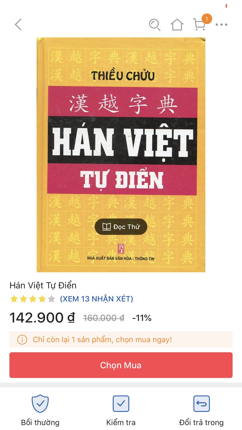 Sách Hán Việt Tự Điển review: Đứng thứ 4 trong Top 1000 Từ Điển Tiếng Hàn bán chạy tháng này, với hơn 22 nhận xét, đánh giá từ độc giả, giá ebook: 139.500 ₫.