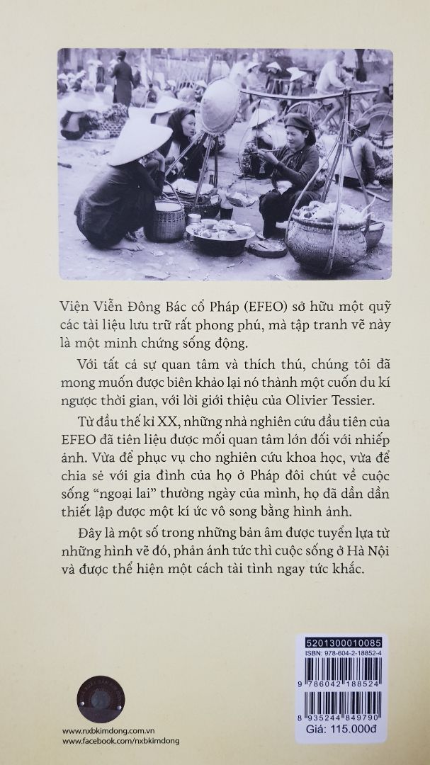 Viện Viễn Đông Bác cổ Pháp (EFEO) sở hữu một quỹ các tài liệu lưu trữ rất phong phú, mà tập tranh vẽ này là một minh chứng sống động. Với tất cả sự quan tâm và thích thú, chúng tôi đã mong muốn được biên khảo lại nó thành một cuốn du kí ngược thời gian, với lời giới thiệu của Olivier Tessier. Từ đầu thế kỉ XX, những nhà nghiên cứu đầu tiên của EFEO đã tiên liệu được mối quan tâm lớn đối với nhiếp ảnh. Vừa để phục vụ cho nghiên cứu khoa học, vừa để chia sẻ với gia đình của họ ở Pháp đôi chút về cuộc sống “ngoại lai” thường ngày của mình, họ đã dần dầnthiết lập được một kí ức vô song bằng hình ảnh. Đây là một số trong những bản âm được tuyển lựa từ những hình vẽ đó, phản ánh tức thì cuộc sống ở Hà Nội và được thể hiện một cách tài tình ngay tức khắc.