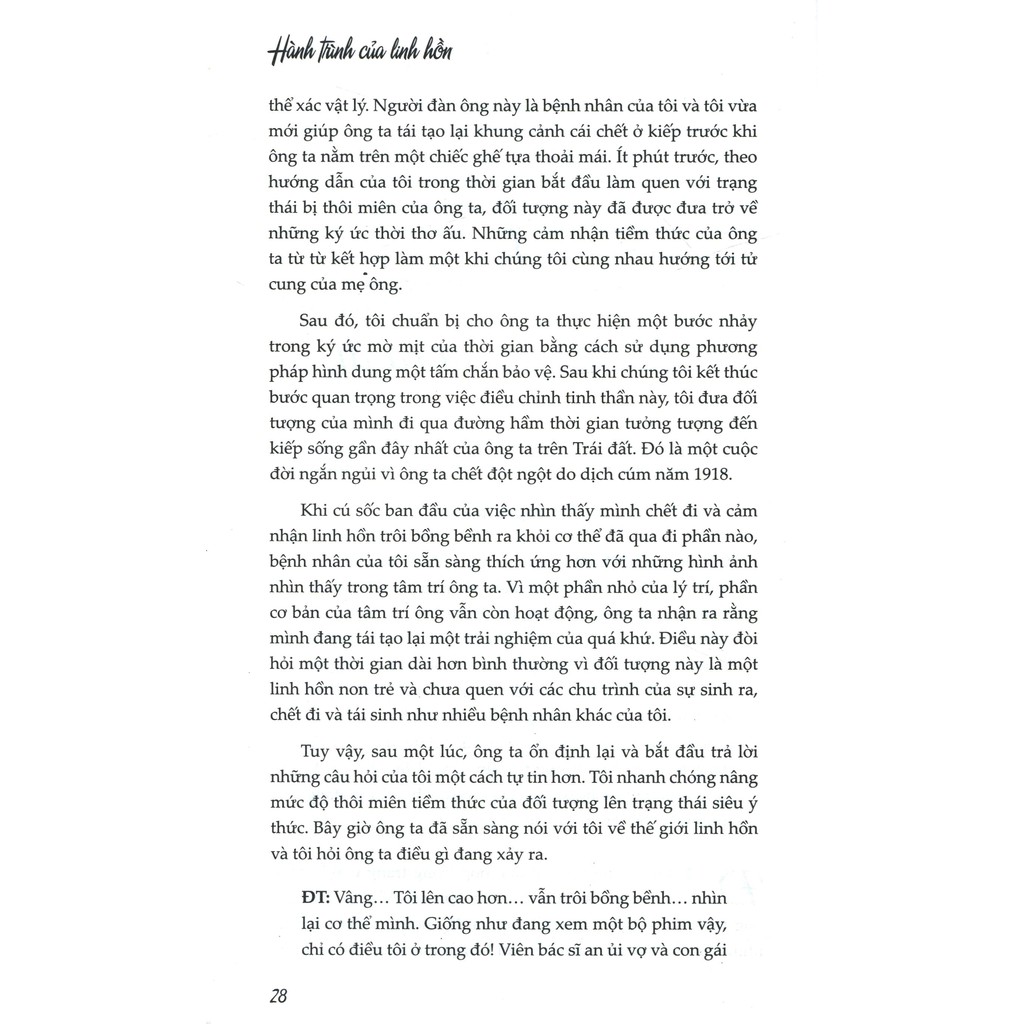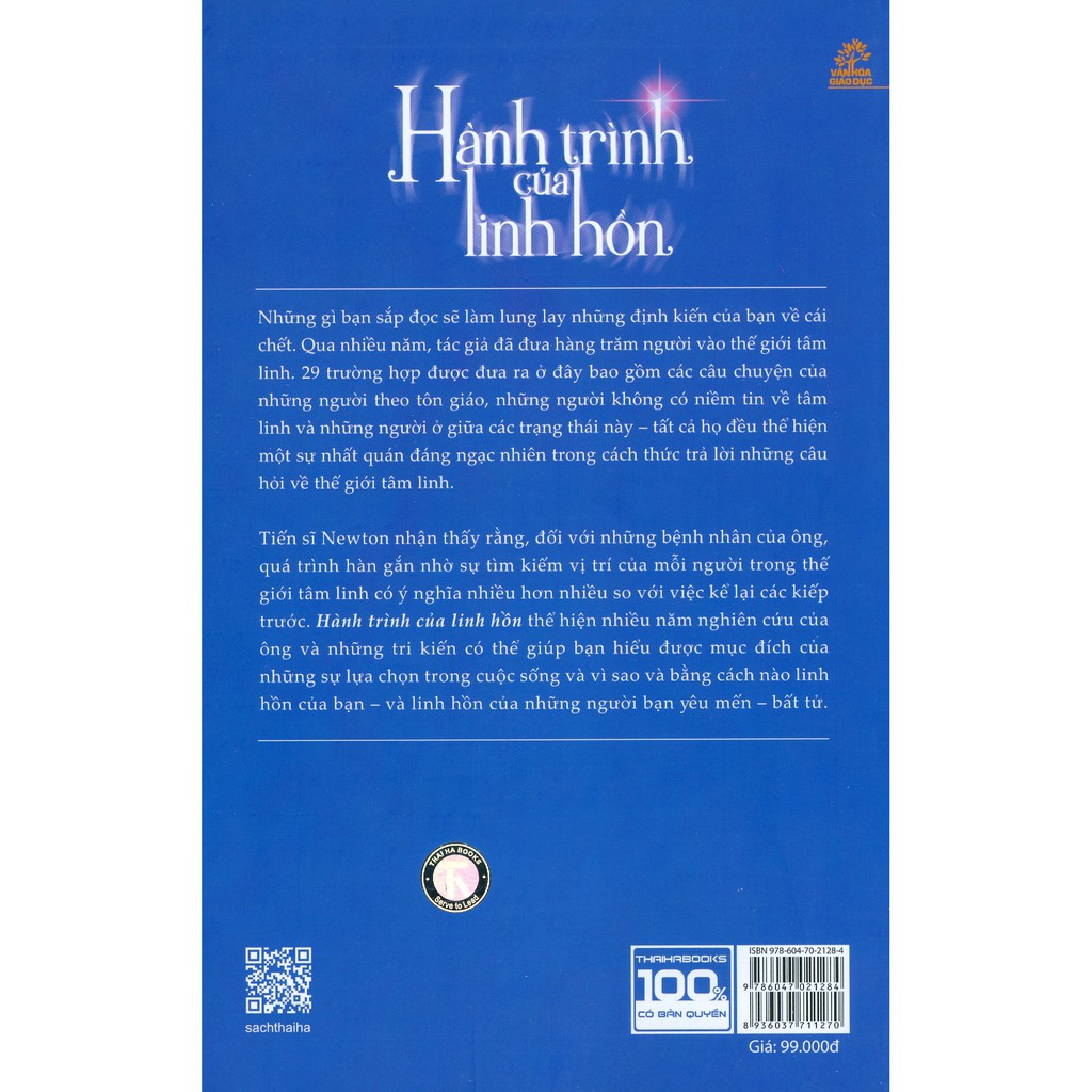 Công ty phát hành: Thái Hà Tác giả: Michael Newton Ngày xuất bản: 03-2018 Kích thước: 15.5 x 24 cm Nhà xuất bản: Nhà Xuất Bản Văn Hóa Dân Tộc Loại bìa: Bìa mềm . Số trang: 428 GIỚI THIỆU SÁCH Hành Trình Của Linh Hồn Bạn có sợ chết không? Bạn có tự hỏi điều gì sẽ xảy ra sau khi bạn chết không? Có thể nào bạn có một linh hồn đến từ đâu đó và sẽ trở về đó sau khi thân xác bạn chết đi, hay đó chỉ là một điều ước ao vì bạn quá sợ hãi? Có một nghịch lý rằng con người, duy nhất trong mọi tạo vật trên Trái đất, phải kìm nén nỗi sợ cái chết để sống bình thường. Nhưng bản năng sinh học của chúng ta không bao giờ cho chúng ta quên nỗi nguy hiểm tối cao này của sự tồn tại của chúng ta. Khi chúng ta già đi, bóng ma của cái chết cũng lớn dần lên trong tâm trí chúng ta. Thậm chí cả những người theo tôn giáo cũng sợ cái chết là sự kết thúc của mỗi cá nhân. Nỗi sợ lớn nhất đối với cái chết đem đến những suy nghĩ về sự vô nghĩa của cái chết, điều kết thúc mọi mối liên hệ với gia đình và bạn bè. Cái chết làm cho mọi mục đích thực tiễn của chúng ta trở nên phù phiếm. Những câu trả lời đích thực cho đời sống sau cái chết vẫn được đóng kín sau cánh cửa tâm linh đối với đa số mọi người. Đó là bởi vì ở trong chúng ta vốn sẵn có khả năng quên đi danh tính của linh hồn chúng ta, điều mà ở mức độ nhận thức, sẽ giúp cho sự hợp nhất của linh hồn và bộ não con người. Những năm gần đây, công chúng đã được nghe về những người chết tạm thời và sau đó sống lại nói về một đường hầm dài, ánh sáng rực rỡ và thậm chí những gặp gỡ ngắn ngủi với những linh hồn thân thiện. Nhưng không có một ấn phẩm nào trong số các cuốn sách đã được viết mang đến cho người đọc nhiều hơn một cái nhìn thoáng qua về tất cả những gì cần biết về cuộc đời sau cái chết. Cuốn sách này là một cuốn nhật ký gần gũi về thế giới linh hồn. Nó trình bày một loạt các trường hợp thể hiện chi tiết, rõ ràng về những gì xảy ra cho chúng ta khi cuộc sống trên Trái đất kết thúc. Bạn sẽ được dẫn qua đường hầm tâm linh để đến với chính thế giới linh hồn để tìm hiểu về những biến đổi đối với linh hồn trước khi chúng cuối cùng trở lại trên Trái đất trong một cuộc sống mới.
