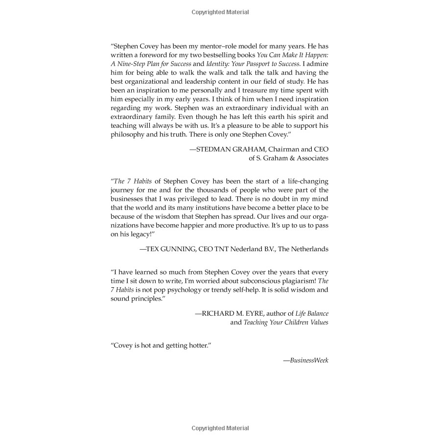 Thông tin sách: ISBN: 9781451639612 Tên Nhà Cung Cấp Simon And Schuster Tác giả Stephen R Covey NXB Simon & Schuster Năm XB 0 Trọng lượng (gr) 650 Kích thước 21.3 x 2.5 x 14 Số trang 432 Hình thức Bìa Mềm Ngôn ngữ Sách Tiếng Anh. Giới thiệu Sách: Tác phẩm “7 Thói quen Hiệu quả/ 7 Habits for Highly Effective People” đã ra đời hơn 25 năm, được biết đến là cuốn sách quản trị (quản trị bản thân và quản trị tổ chức) bán chạy nhất mọi thời đại với hơn 30 triệu bản bán ra trên toàn thế giới và được dịch sang 40 ngôn ngữ. Sách có mặt tại thị trường Việt Nam hơn 10 năm nay dưới cái tên “7 Thói quen để Thành đạt”. Ấn bản mới năm 2016 được đặt lại đúng với cái tên mộc mạc vốn có của bản gốc Tiếng Anh và có nội dung không chỉ được dịch lại toàn bộ cho sát nghĩa, dễ đọc hơn với các độc giả mà còn được cập nhật thêm những công cụ và ví dụ thực tiễn từ phiên bản nước ngoài mới nhất và có hình ảnh bìa (màu xanh đậm) giống với phiên bản gốc mới nhất. Trích lời giới thiệu của nhà giáo Giản Tư Trung – tác giả sách Đúng Việc (lời giới thiệu chỉ có trong ấn bản tiếng Việt được dịch bởi FranklinCovey Việt Nam): Tên đầy đủ của cuốn sách này, nếu dịch sát nghĩa sẽ là: “7 Thói quen của người có hiệu quả vượt trội” còn nếu dịch một cách ngắn gọn nhưng vẫn sâu sắc sẽ là “7 Thói quen Hiệu quả”. Gần như Stephen Covey đã dành cả cuộc đời mình để nghiên cứu về tính hiệu quả của con người, để đi tìm câu trả lời cho ba câu hỏi lớn lao, đó là: Vì sao con người ta trở nên ít hiệu quả?; Điều gì làm cho con người ta trở nên hiệu quả cao?; và Điều gì tạo nên hiệu quả bền vững? và 7 Habits chính là sự đúc kết sự nghiệp nghiên cứu cả đời của ông cho ba câu hỏi mang tính “muôn đời” đó. Mơ ước của hầu hết mọi người trong đời là trở thành một con người thành công và hạnh phúc bằng chính tài năng và đạo đức của mình. Ở bình diện tổ chức hay các quốc gia cũng vậy. Một tổ chức hay quốc gia càng có nhiều người hướng đến thành công bằng tài năng và đạo đức, tổ chức hay quốc gia đó càng có cơ hội phát triển thịnh vượng và văn minh. Tài năng và đạo đức đã trở thành những phẩm chất được tìm kiếm và tôn vinh hàng đầu trong mọi xã hội và mọi thời đại, và chúng có một mối liên quan chặt chẽ với với hiệu quả và hiệu quả bền vững. Cần có tài năng thì mới tạo ra được hiệu quả, cần có đạo đức thì mới tạo ra được hiệu quả bền vững. Và ngược lại, không ai có thể được xem là tài năng nếu không tạo ra hiệu quả, cũng như không ai có thể được coi là có đạo đức nếu như việc tạo ra hiệu quả đó chỉ là nhất thời chứ không mang tính bền vững, bởi lẽ, để tạo ra hiệu quả bền vững thì luôn phải dựa trên nền tảng đạo đức. Vì thế, câu trả lời về “hiệu quả” cũng chính là”lời đáp” cho câu chuyện về tài năng và đạo đức mà nhiều người tìm kiếm, mà lại là một “lời đáp” được đúc kết bằng việc chuyển hóa một hệ thống giá trị ở bên trong để hình thành bản tính thành công bền vững của con người, chứ hoàn toàn không phải là những chiêu trò hay thủ thuật ở bên ngoài.