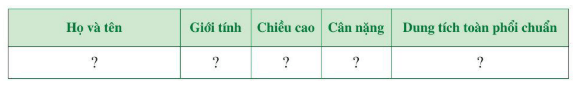 Học sinh tự thực hiện việc đo chiều cao, cân nặng và áp dụng để tính dung tích toàn phổi chuẩn của các thành viên trong tổ.