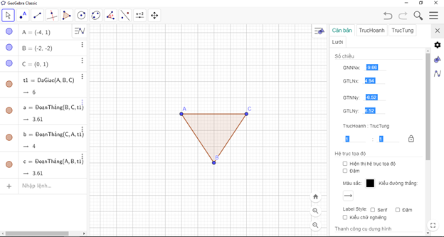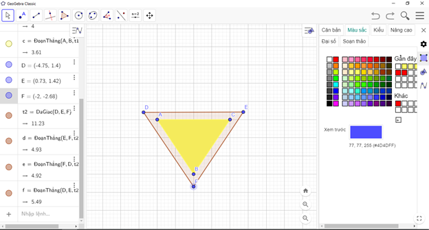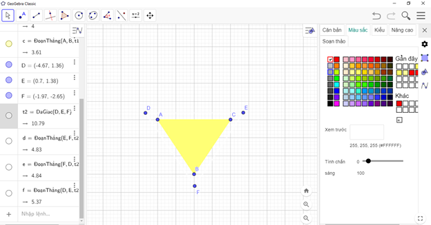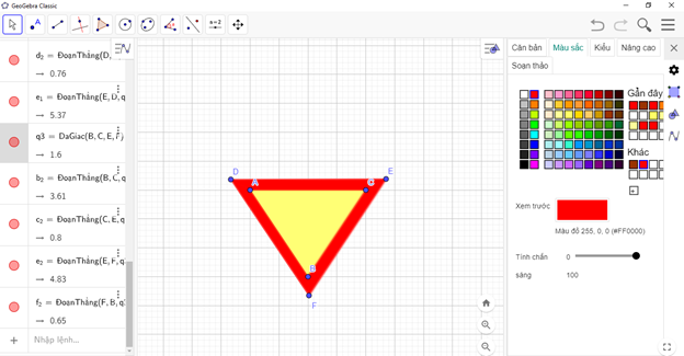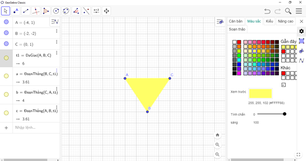 – Chọn tam giác đều ABC (Nhấn chuột vào phần trong hình tam giác)