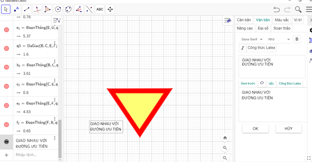 – Ta gõ chữ GIAO NHAU VỚI ĐƯỜNG ƯU TIÊN vào hộp thoại, chú ý xuống dòng như sau: