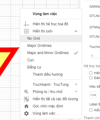 – Chọn chuột vào “Hiện thị lưới”, chọn “No grid”