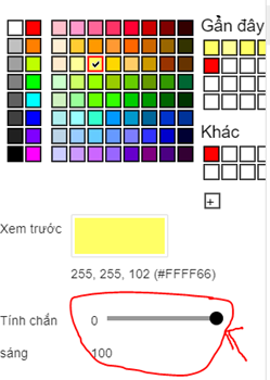 – Ở thanh “Tính chắn sáng”, kéo chuột về hết cỡ đến 100 để được màu vàng đậm.