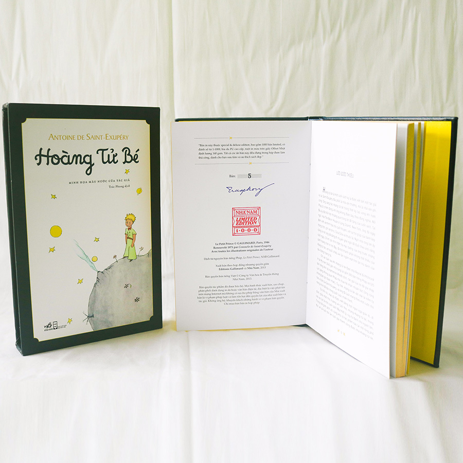 HOÀNG TỬ BÉ – Deluxe & Limited Edition – Phân phối độc quyền bởi Tiki Kỷ niệm 15 năm thành lập, Nhã Nam hân hạnh phát hành phiên bản deluxe và giới hạn “Hoàng tử bé”, tác phẩm bất hủ của nhà văn Antoine de Saint-Éxupéry, với các minh hoạ màu nước của chính tác giả. Bản in đặc biệt đảm bảo các tiêu chuẩn như sau: Bìa da PU cao cấp màu lam đậm, bồi trên carton 3 ly nhập ngoại. Title sách, tên tác giả và hình hoàng tử bé được ép kim màu vàng ta với công nghệ cao tần, sắc nét, bền đẹp… Cạnh sách: sơn nhũ vàng toàn bộ 3 cạnh Ruột sách: in 4 màu trên giấy offset nhập ngoại, định lượng cao 140gsm, màu trắng ngà, để đảm bảo trung thực nhất các bức tranh của tác giả, được Gallimard chuyển giao cho Nhã Nam theo hợp đồng bản quyền chính thức. Hộp sách: bồi carton 3 ly, gia công thủ công, in hình bìa sách gốc, để vừa bảo quản sách được lâu dài, vừa giữ nguyên được bìa gốc của sách. Hộp sách sẽ dán sticker ấn bản kỷ niệm 15 năm thành lập của Nhã Nam. Các ấn bản cao cấp giới hạn này sẽ chỉ in duy nhất một lần 1000 bản, sẽ được đánh số từ 1-1000, có chữ ký dịch giả Trác Phong, và được đóng triện đỏ “Nhã Nam Limited Edition”, được thiết kế riêng cho lần xuất bản này. GIỚI THIỆU TÁC PHẨM: “Hoàng tử bé”, tác phẩm nổi tiếng của Antoine de Saint-Éxupéry, được bình chọn là tác phẩm hay nhất thế kỷ 20 ở Pháp, đồng thời cũng là cuốn sách Pháp được dịch và được đọc nhiều nhất trên thế giới, với hơn 250 ngôn ngữ dịch khác nhau, cùng hơn 200 triệu bản in trên toàn cầu. Ở Việt Nam, bản in “Hoàng tử bé” của Nhã Nam là bản sách đầu tiên và duy nhất có bản quyền tác giả chính thức, xuất bản vào dịp kỷ niệm 70 năm, ngày tác phẩm ra đời. Vì thế về chất lượng in màu các bức vẽ của “Hoàng tử bé”, bản in này cũng là bản sách có chất lượng cao nhất, tương tự như chất lượng in của các ấn bản ở Pháp, do sử dụng các tranh minh hoạ gốc mà Gallimard, nhà xuất bản Pháp chính thức đại diện cho tác giả, cung cấp cho Nhã Nam.