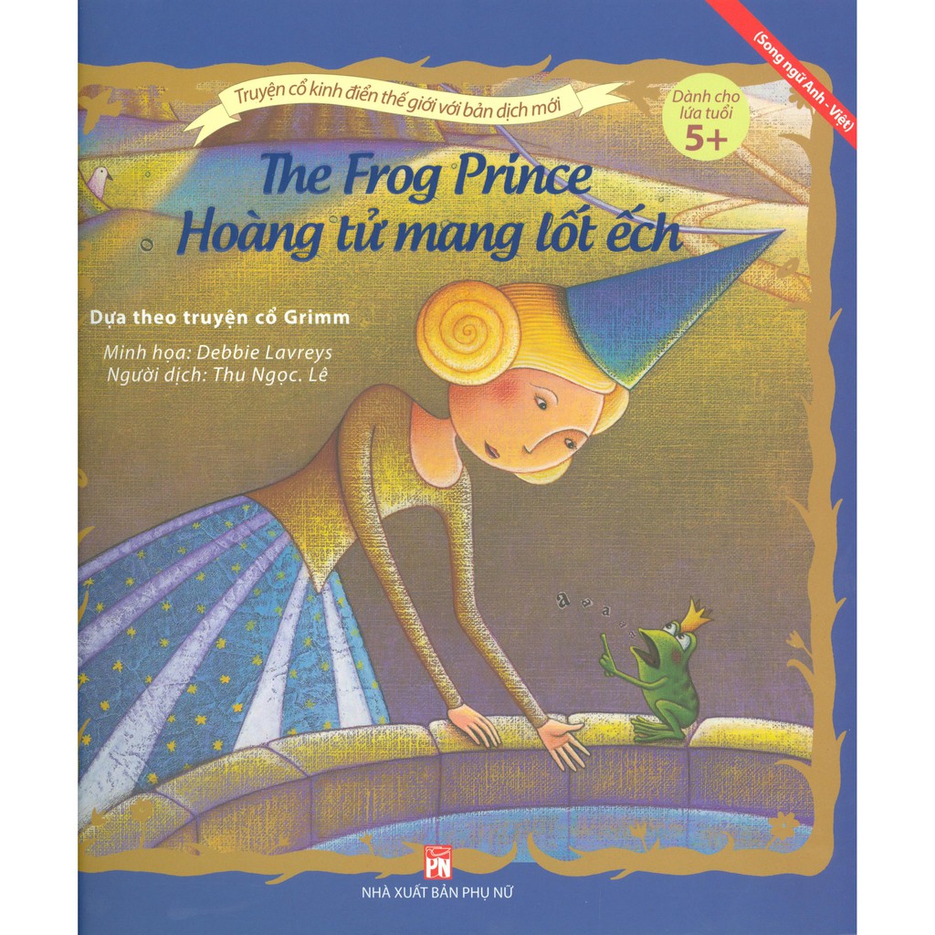 Hoàng Tử Mang Lốt Ếch-The Frog Price Tác giả Debbie Lavreys Nhà xuất bản NXB Phụ Nữ Công ty phát hành NXB Phụ Nữ Năm xuất bản 2019 Kích thước 26 x 27 cm Số trang 28 Giới thiệu sách “Hoàng Tử Mang Lốt Ếch – The Frog Price Bộ truyện cổ kinh điển thế giới với bản dịch mới là Bộ sách Song ngữ Anh -Việt gồm 7 cuốn do Nhà xuất bản Phụ nữ Việt Nam ấn hành tháng 11 năm 2019. Vẫn là những tác phẩm truyện cổ kinh điển quen thuộc với biết bao thế hệ thiếu nhi nhưng khi xuất bản bộ sách này, Nhà xuất bản Phụ nữ Việt Nam hi vọng sẽ giúp các độc giả nhí có những chuyến phiêu lưu mới với: Cách tiếp cận chuyện kể mới và hiện đại hơn Tăng cường năng lực ngôn ngữ, cả ở tiếng Anh và tiếng Việt Có trải nghiệm mới với các sắc màu, hình vẽ minh họa mang đậm phong cách Châu Âu”