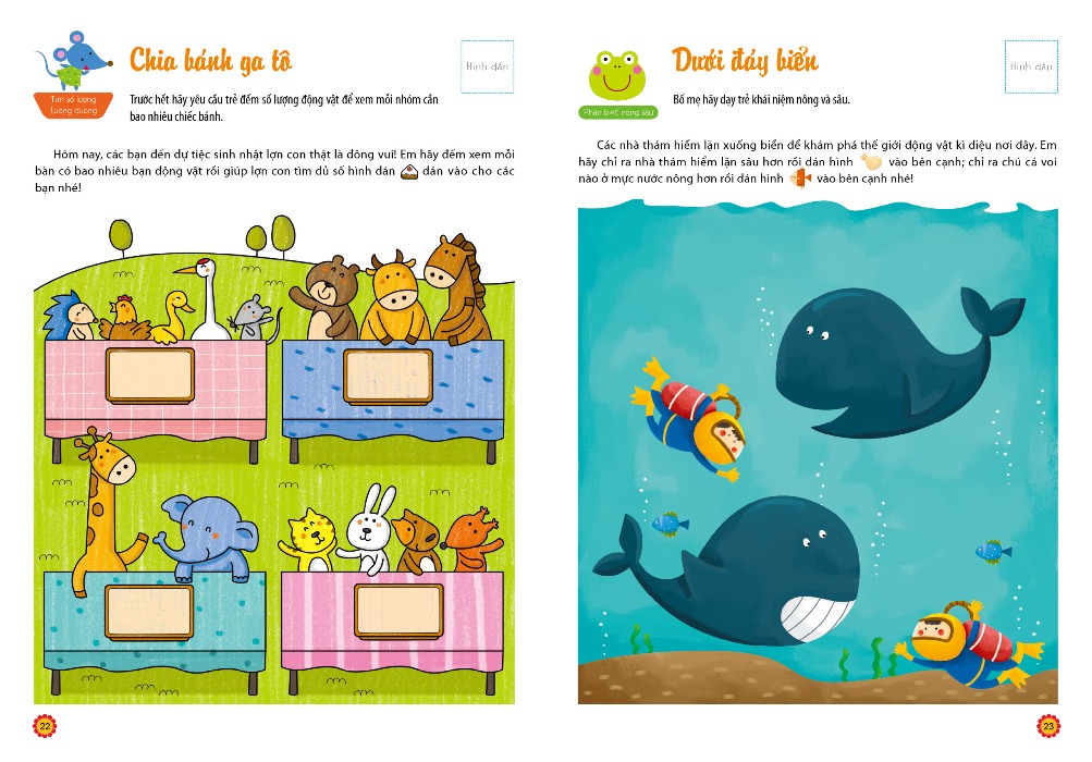 Học Toán Thật Đơn Giản (3-4 Tuổi) – Tập 1 Nhằm chuẩn bị cho trẻ hành trang tốt nhất khi bước vào lớp 1, Dongabooks vừa phát hành bộ sách Học toán thật đơn giản gồm 8 tập. Bộ sách là những nấc thang đầu tiên giúp trẻ học giỏi toán. Được biên soạn dựa trên đặc điểm phát triển ở từng giai đoạn, Học toán thật đơn giản giúp trẻ từ 2 đến 6 tuổi làm quen với các khái niệm cơ bản cũng như bước đầu hình thành tư duy toán học qua các câu hỏi, trò chơi thú vị rút ra từ cuộc sống hằng ngày, từ đó tạo dựng được nền tảng vững chắc trước khi bước vào lớp 1. Điểm thú vị của bộ sách là những câu hỏi, bài tập được trình bày rất sống động, đầy màu sắc, sẽ kích thích được sự yêu thích, ham học hỏi của trẻ. Với những hình dán Tuyệt vời, Rất tốt, Rất thông minh, Đủ tiêu chuẩn, Cần cố gắng… để đánh giá từng bài tập, bố mẹ hãy khuyến khích, cổ vũ con mình học toán. Hãy cùng bé học toán mỗi ngày để trang bị cho bé một nền tảng kiến thức vững chắc trước tuổi đi học!